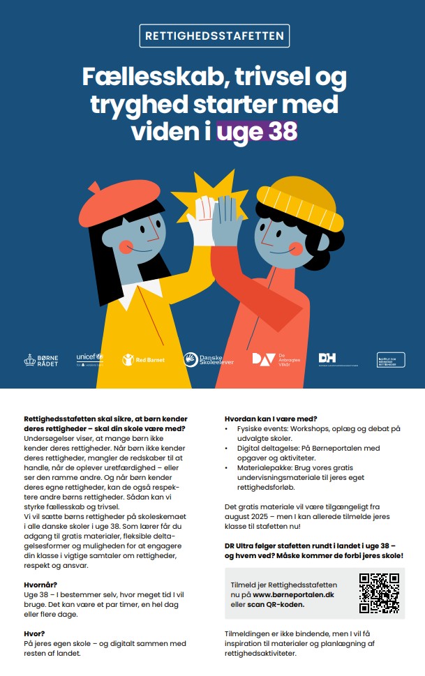 Tilmeldingen er åben – og ikke bindende – på www.boerneportalen.dk/rettighedsstafet. Så snart I tilmelder jer, får I adgang til inspiration og materialer.