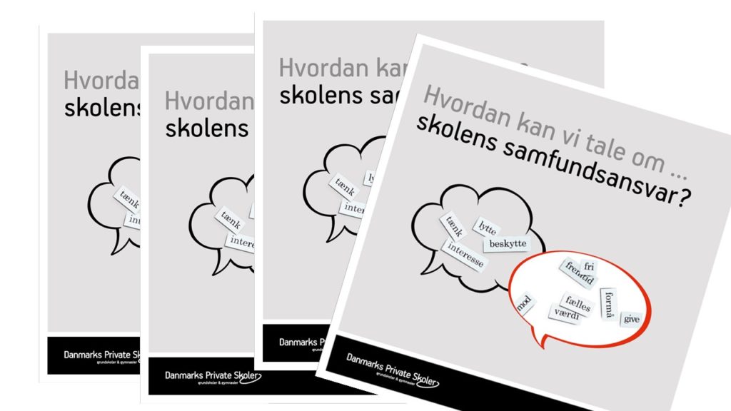 “Hvordan kan vi tale om skolens samfundsansvar?” (2019) er tænkt som inspiration til den lokale dialog om de tiltag og aktiviteter, skolen iværksætter med det underliggende formål at handle til gavn for samfundet.